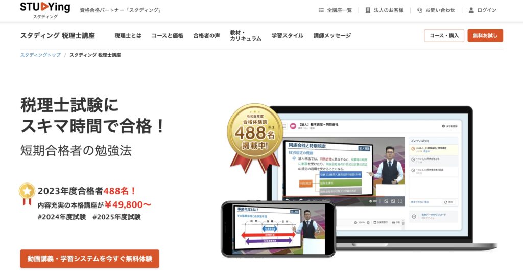 しかしスタディング税理士講座を受講した人が毎年のように試験に合格して資格を取得しています。講座を長く続けているからと言って必ずしも優れた講義をしているとは限りません。