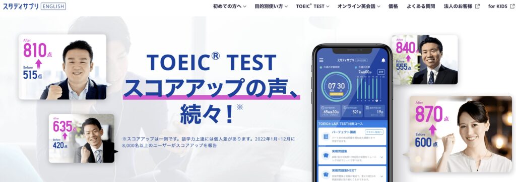 TOEIC対策として多くの方が利用している「スタディサプリTOEIC」。スマホで手軽にTOEIC対策ができるので、忙しい社会人や学生などから支持を得ています。